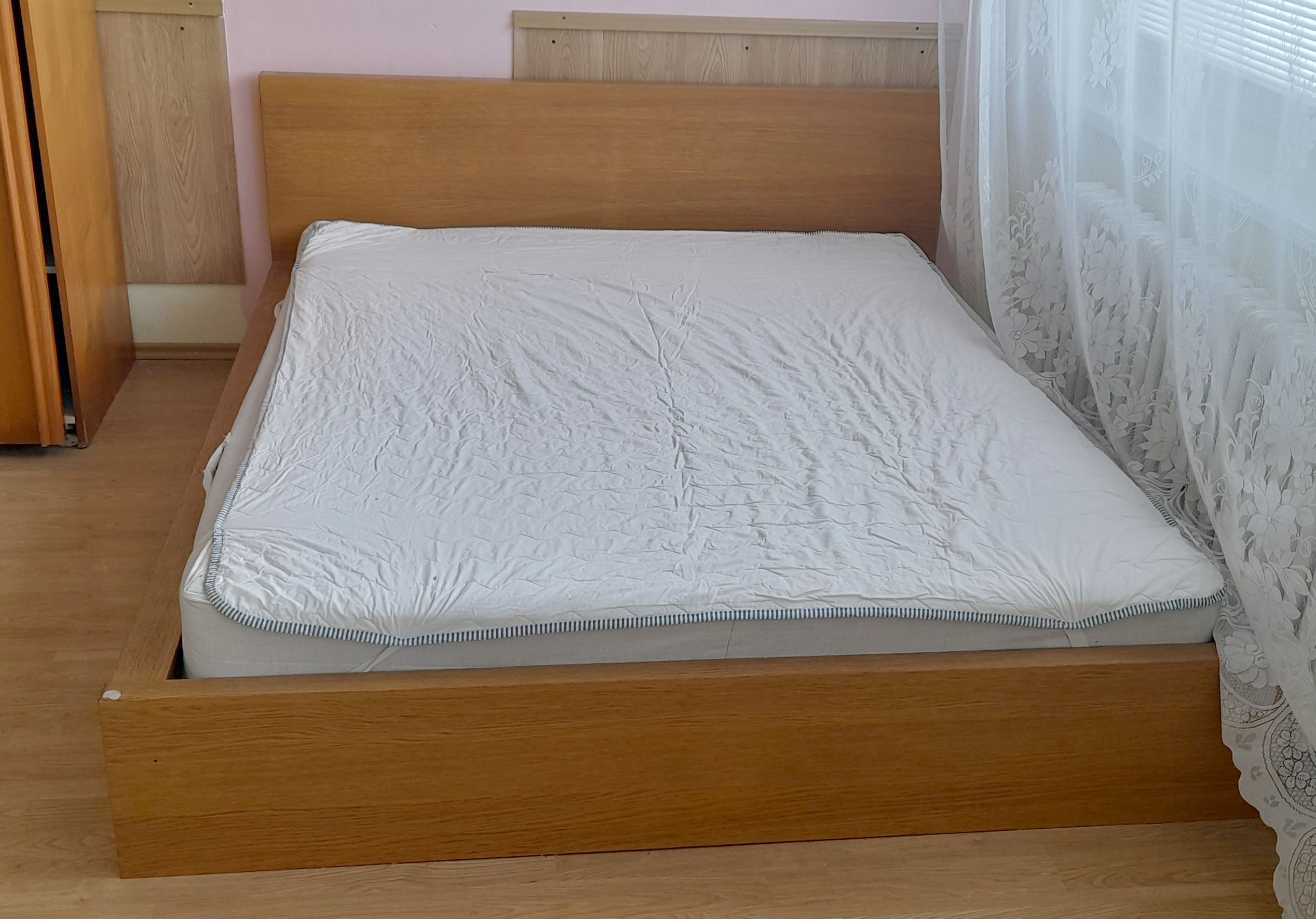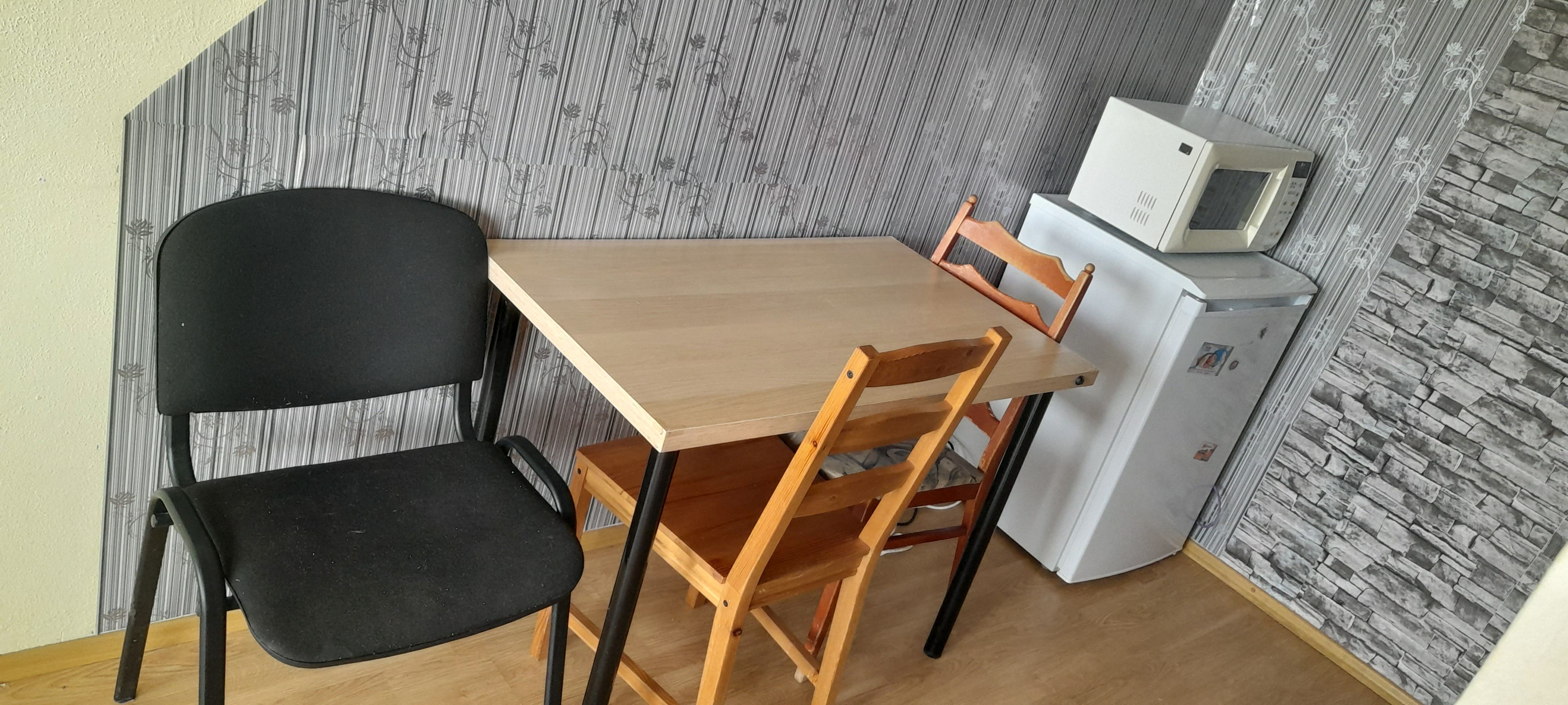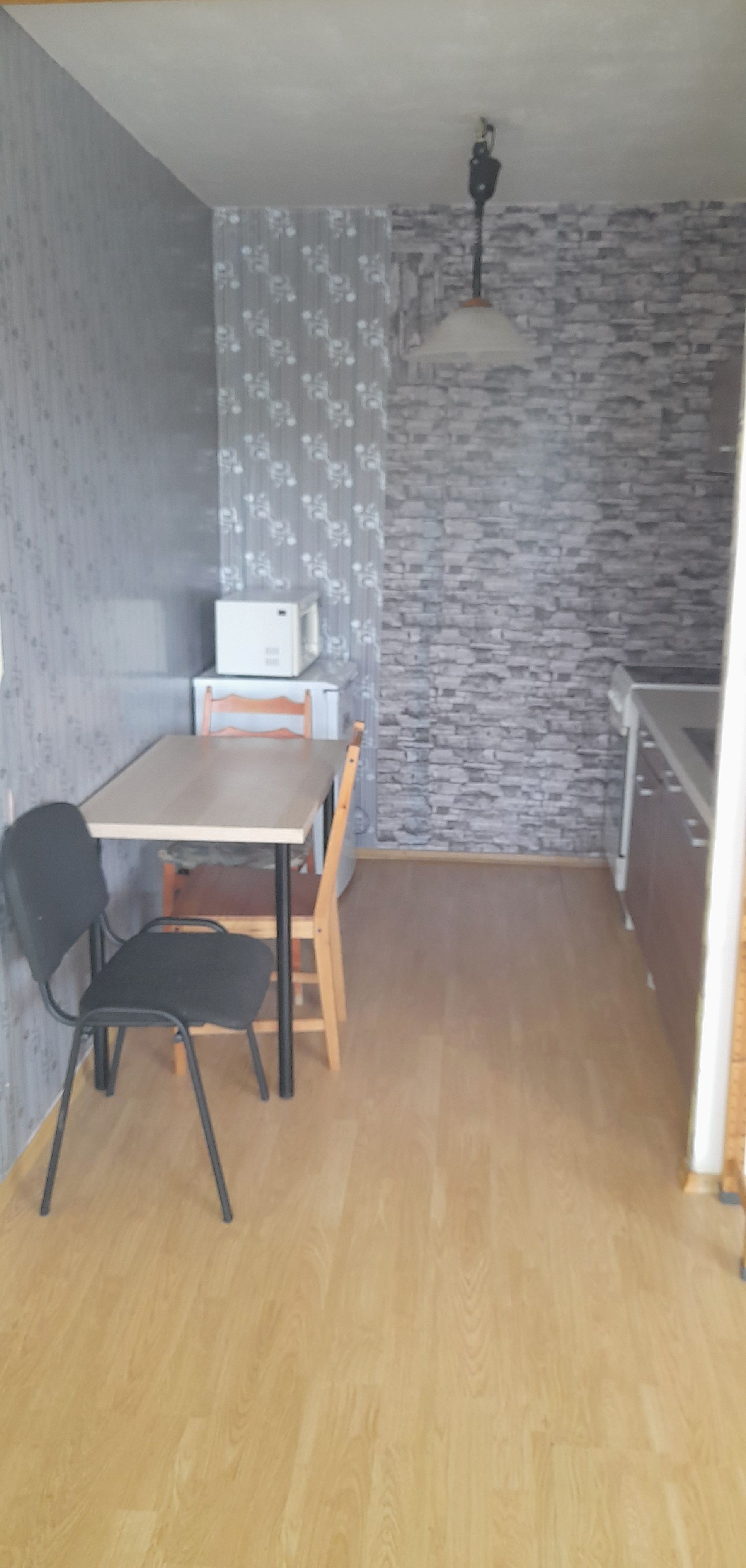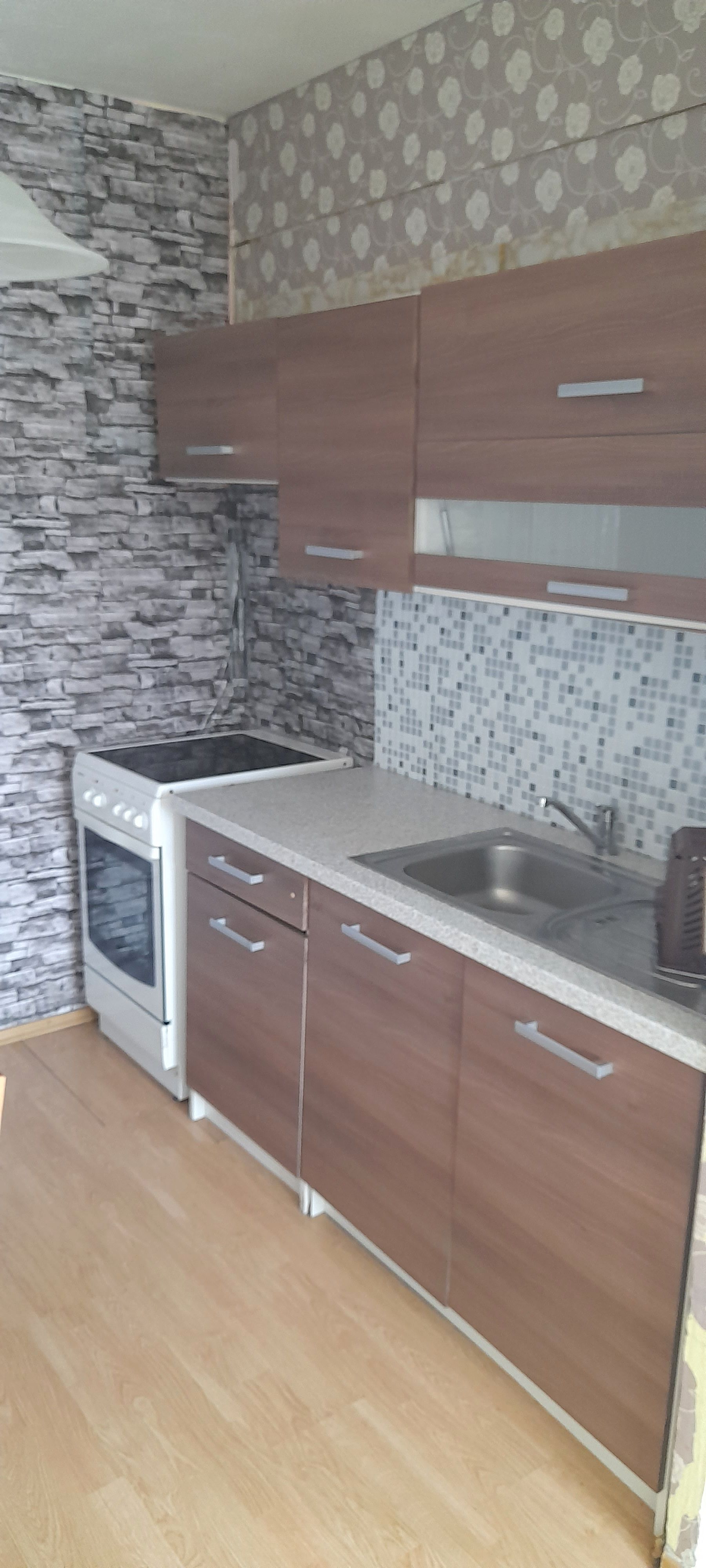 Квартира без особого ремонта, но обжитая, кухня новая, установлены пластиковые окна с жалюзи, из мебели есть двуспальная кровать с тумбочками, шкаф для одежды, стол, стулья, полки для вещей, кухонные шкафчики, а из техники - стиральная машинка, маленький холодильник, микроволновка, эл. плита. По желанию арендаторы могут докупить какую-то мебель для себя (по договоренности с хозяевами). Окна выходят на солнечную сторону. Тихие спокойные соседи.